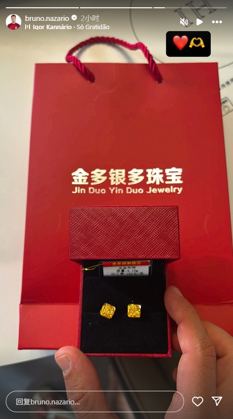 04月26日訊 昨日是河南外援納薩里奧與妻子結(jié)婚12周年紀念日,納薩里奧給妻子買了一對足金耳飾。